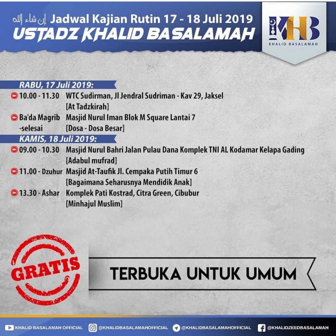 Sahabat KH-B - Jadwal rutin Ustadz Khalid Basalamah tgl… | Facebook