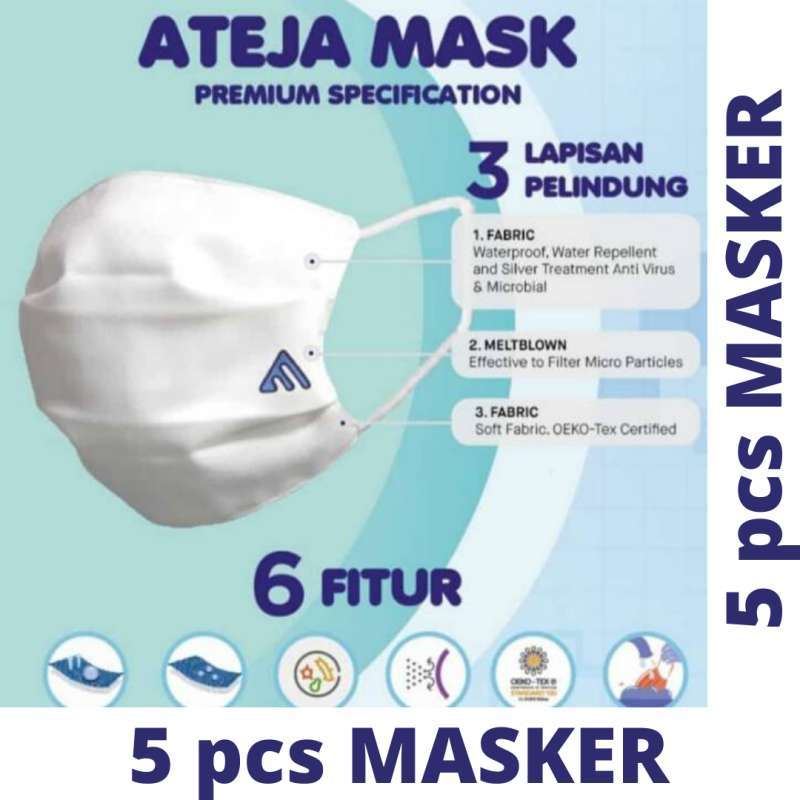 Jual Masker Kain Ateja 3 Lapis (isi 5 pcs) Anti Air dan Dapat …