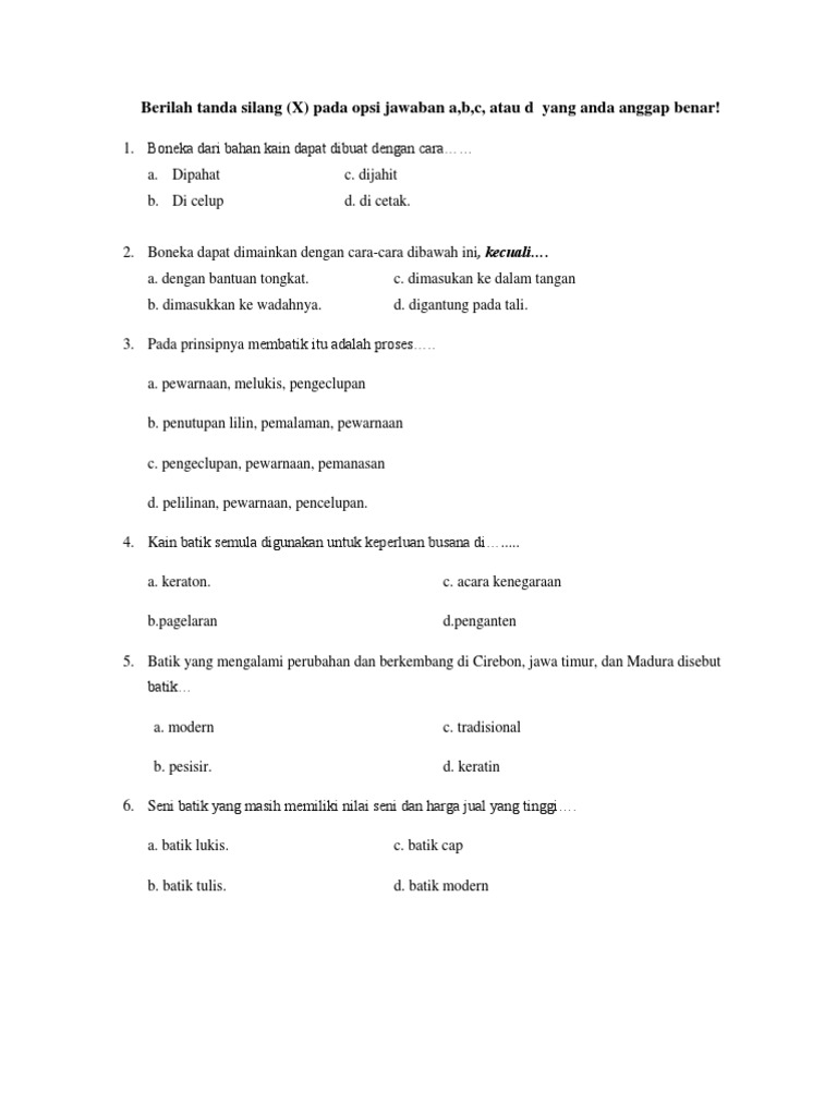 kain batik semula digunakan untuk keperluan busana di a. keraton b …