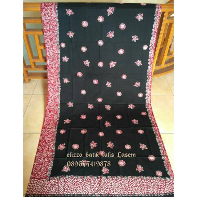 Kain Batik tulis Lasem motif bunga dan kupu-kupu merah hitam | Shopee Indonesia