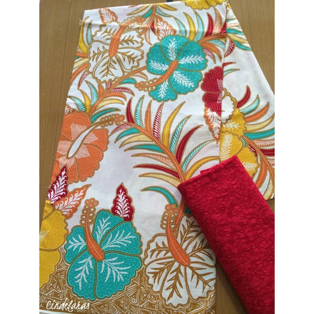 KAIN BATIK & EMBOS MOTIF KEMBANG LANGIT MERAH | Lazada Indonesia