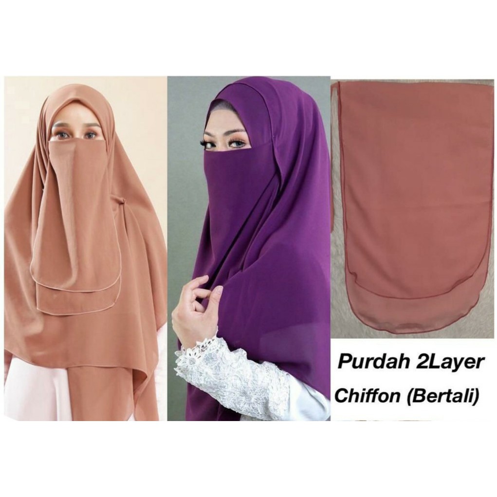 Purdah / Niqab 2 Layer Kain Heavy Chiffon bertali | Shopee Singapore