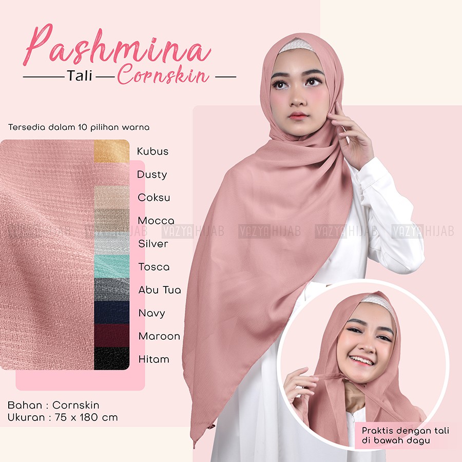 Hijab Cantik Bandung - Pashmina Tali Bahan Cornskin Tekstur Kain Kulit Jagung Size 180x75cm 115gr | Shopee Indonesia