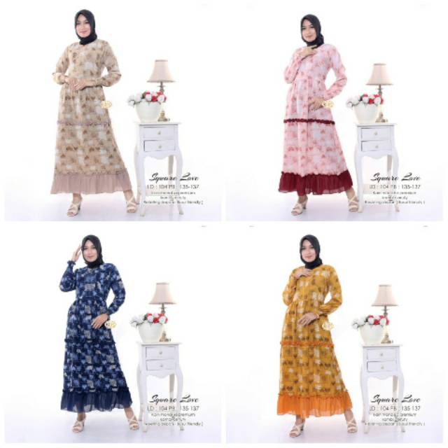 Gamis square love.allsize LD 104 PB 135.kain monalisa mix ceruti.busui resleting depan lengan karet | Shopee Indonesia