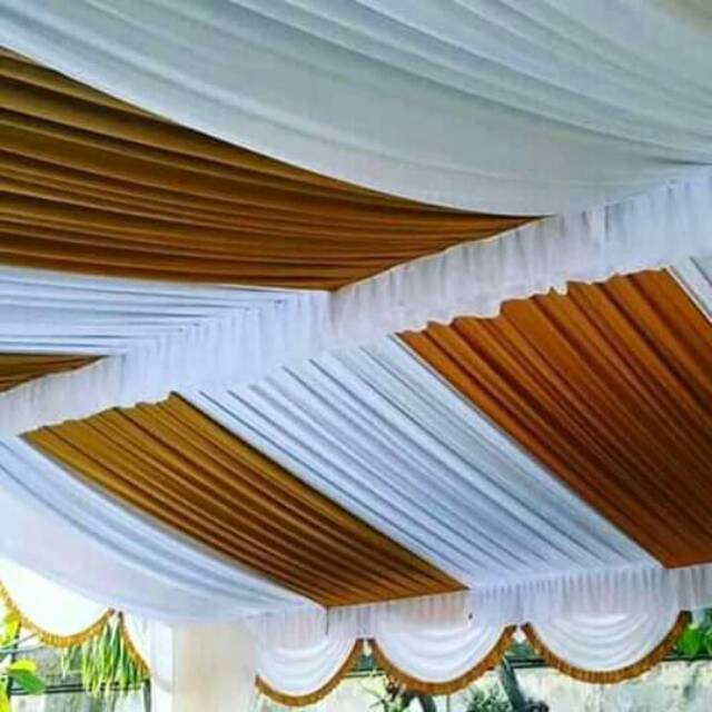 Plafon Tenda Dekor Mewah Warna Gold Putih | JUAL COVER SARUNG KURSI MURAH TERLENGKAP