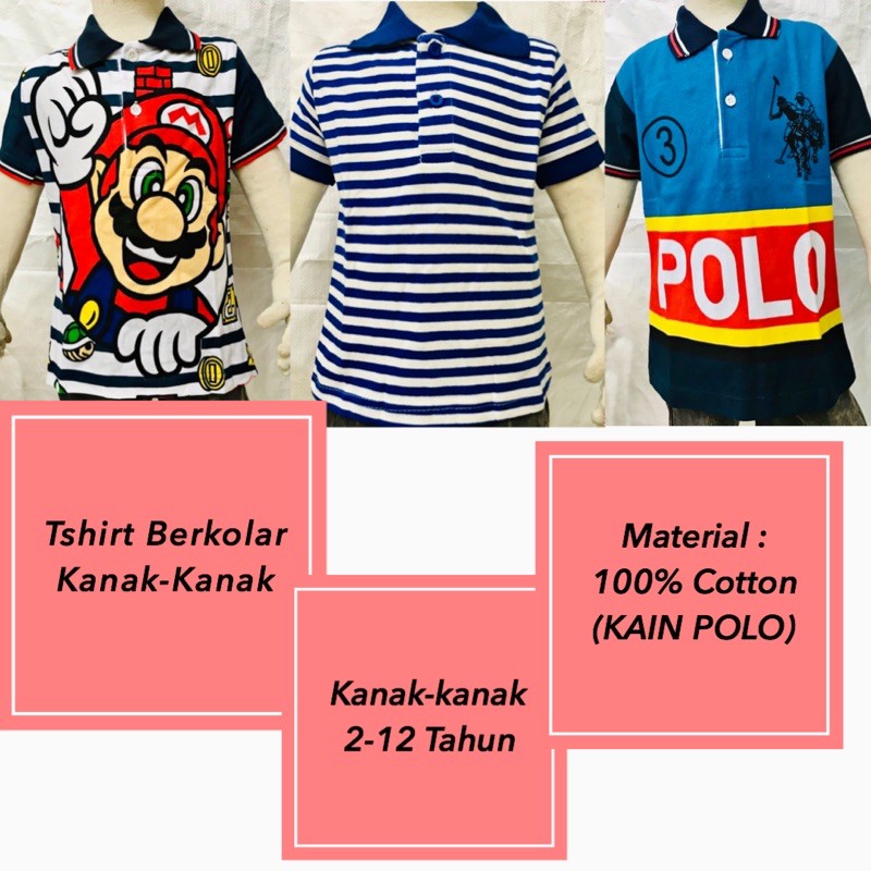 Tshirt POLOBaju Budak Berkolar /Tshirt Kanak-Kanak 1-12 TAHUN 100% COTTON Kain Polo | Shopee Malaysia