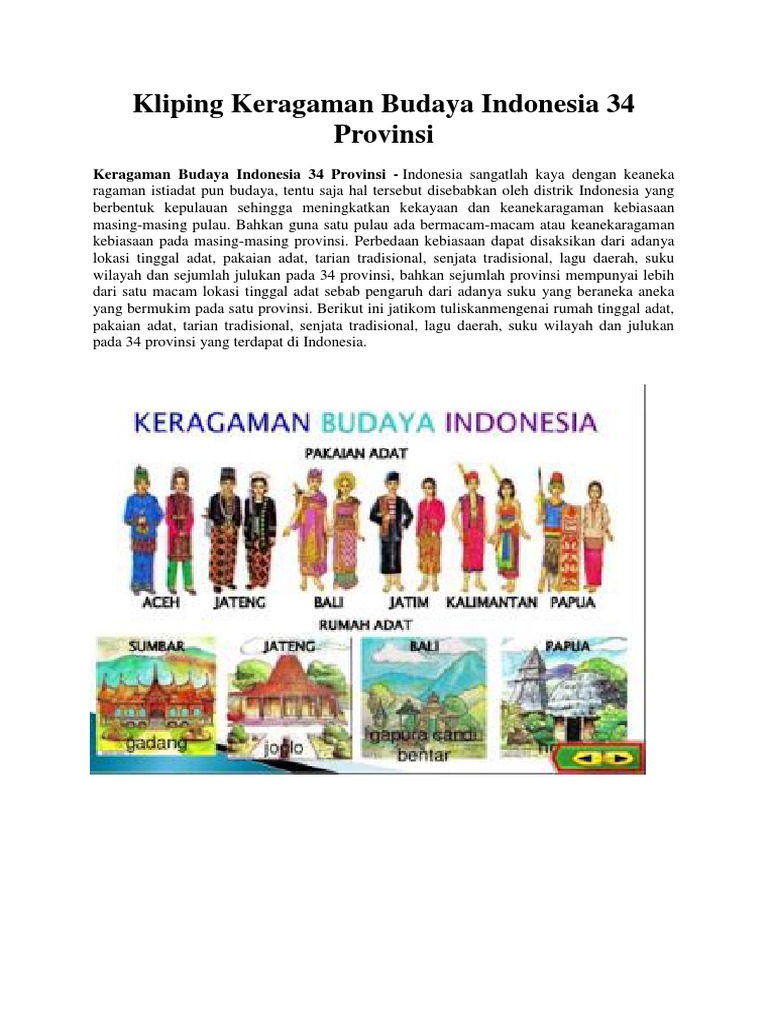 Kliping Keragaman Budaya Indonesia 34 Provinsi Serta - Cute766