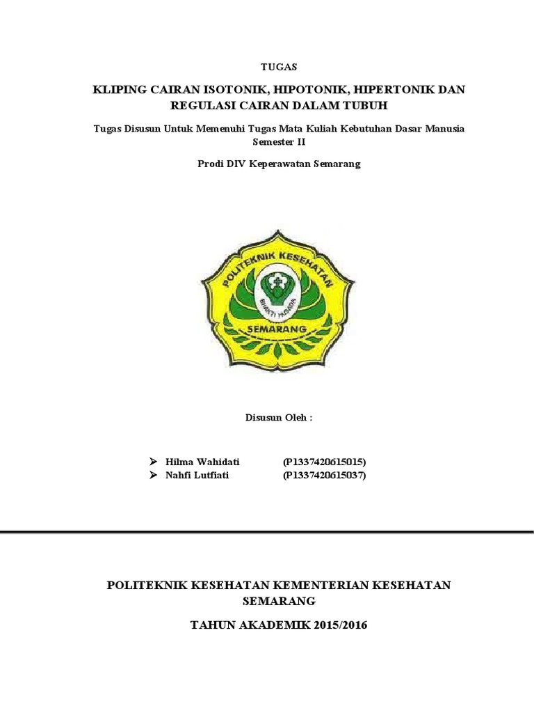 Kliping Cairan Isotonik, Hipotonik, Hipertonik Dan Regulasi Cairan Dalam Tubuh