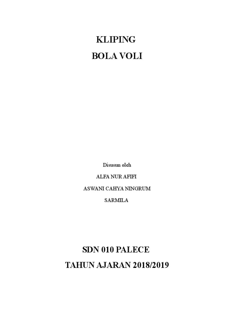 Kliping Bola Voli: Sdn 010 Palece TAHUN AJARAN 2018/2019