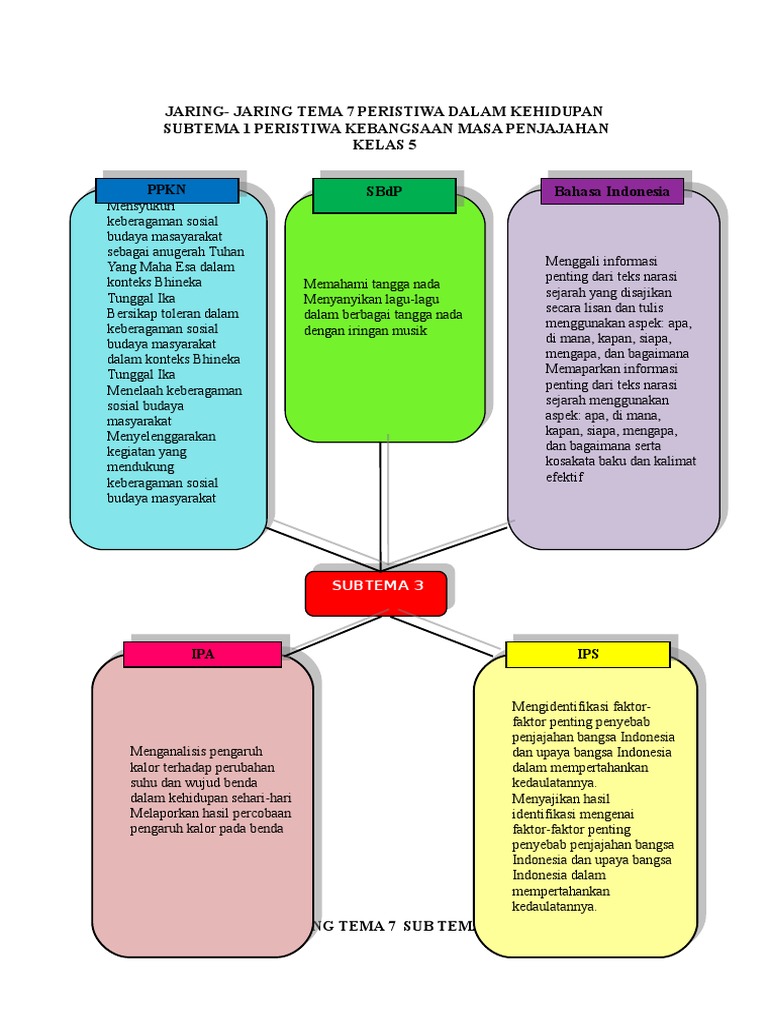 Jaring-Jaring Tema 7 Peristiwa Dalam Kehidupan Subtema 1 Peristiwa Kebangsaan Masa Penjajahan Kelas 5 Sbdp Bahasa Indonesia