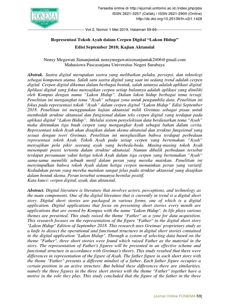 Representasi Tokoh Ayah dalam Cerpen Digital Lakon Hidup: Mahasiswa Pascasarjana Universitas Negeri Surabaya