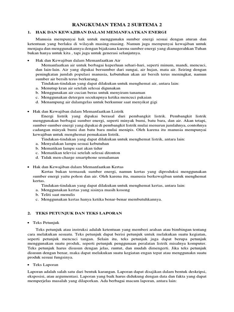 Rangkuman Tema 2 Subtema 2: 1. Hak Dan Kewajiban Dalam …