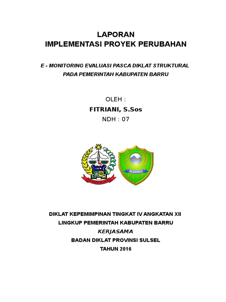 DOC) Contoh Pelaporan Proyek Perubahan Diklat Pim IV | Susilowati Puspaningsih - Academia.edu