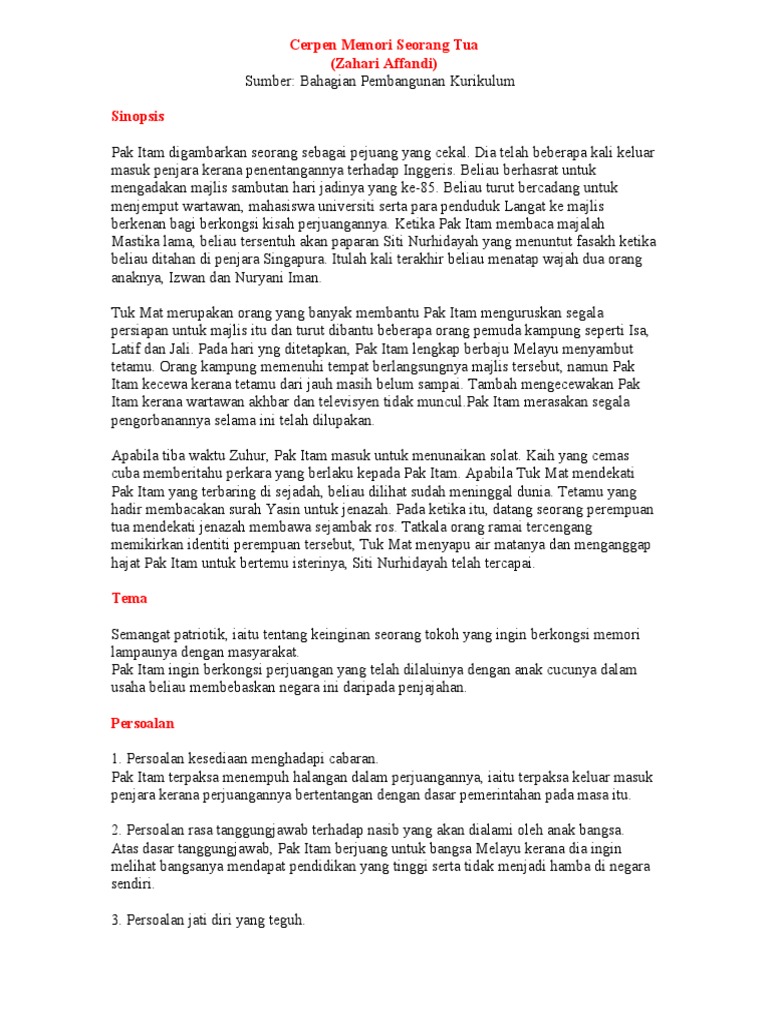 Cerpen Memori Seorang Tua (Zahari Affandi) - PDF Free Download