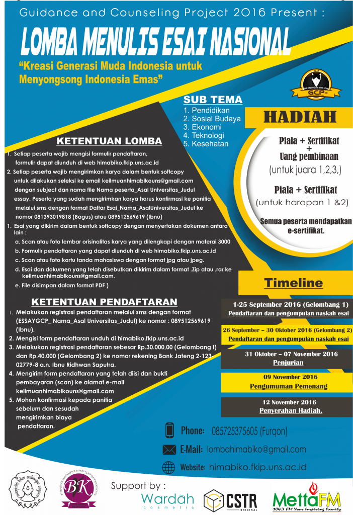 Dari Tubagus untuk Bimbingan dan Konseling Indonesia: LOMBA ESSAY MAHASISWA TINGKAT NASIONAL GCP BK UNS 2016