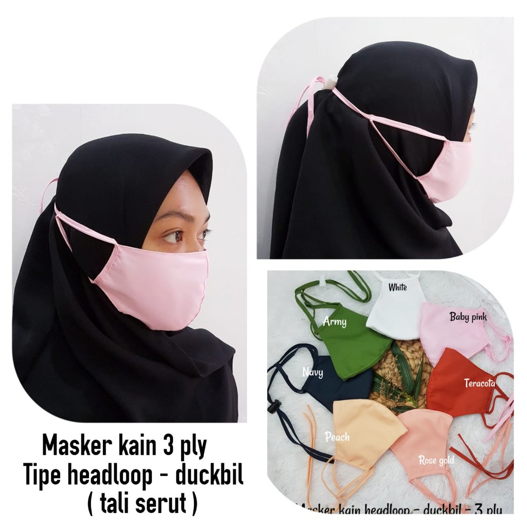 Masker kain warna polos headloop kualitas SNI tipe duckbil 3 ply I Masker hijab tiga lapis | Shopee Indonesia