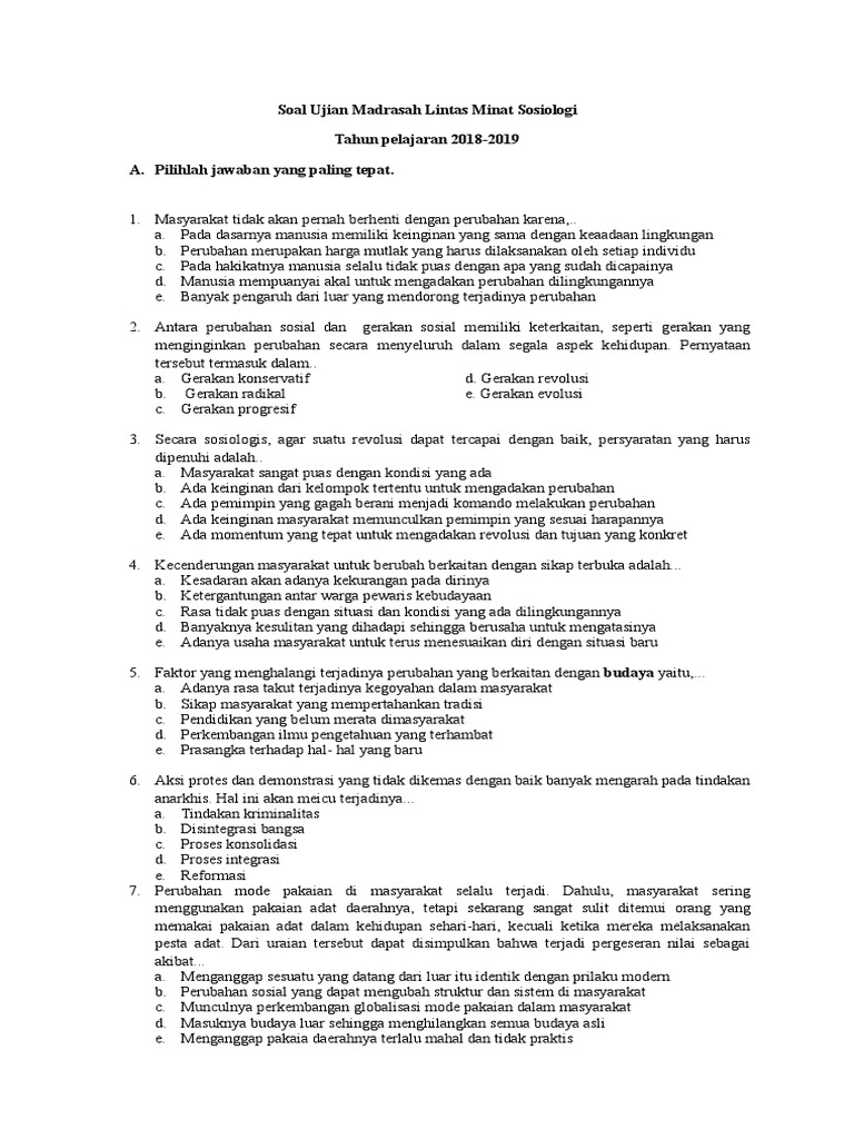 Soal Pendalaman Pilihan Ganda Materi Sosiologi Kelas XII Bab 1 …