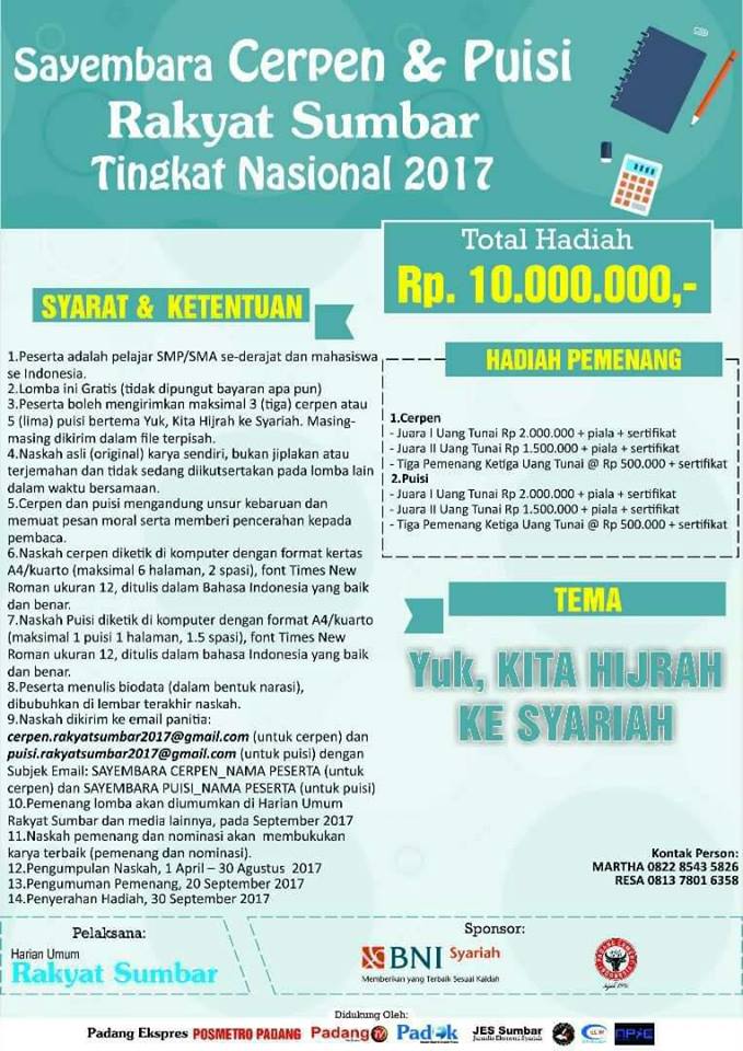 Lomba Menulis Cerpen dan Puisi Total Hadiah 10 Juta - Harian Rakyat Sumbar | Info Lomba Menulis