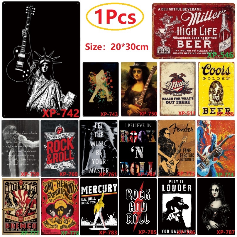 1Pcs 20x30cm Music Metal Poster Plaque Metal Vintage Rock and Roll Metal Sign Tin Sign Wall Decor for Bar Pub Club Man Cave Iron Painting | Shopee Singapore