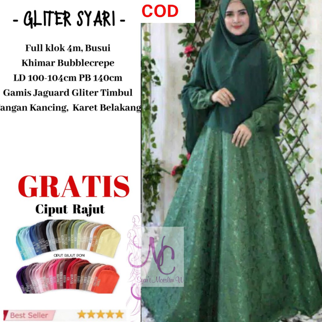 BAYAR DI TEMPAT - Gamis Pesta mewah jaguar glitter model terbaru set khimar hijab murah | Lazada Indonesia