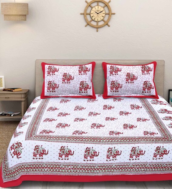 Buy Ethnic Motif 140TC Cotton King Size Bed Sheet with 2 Pillow covers By Rajasthan Decor Online - Traditional King Bed Sheets - Bed Sheets - Furnishings - Pepperfry Product