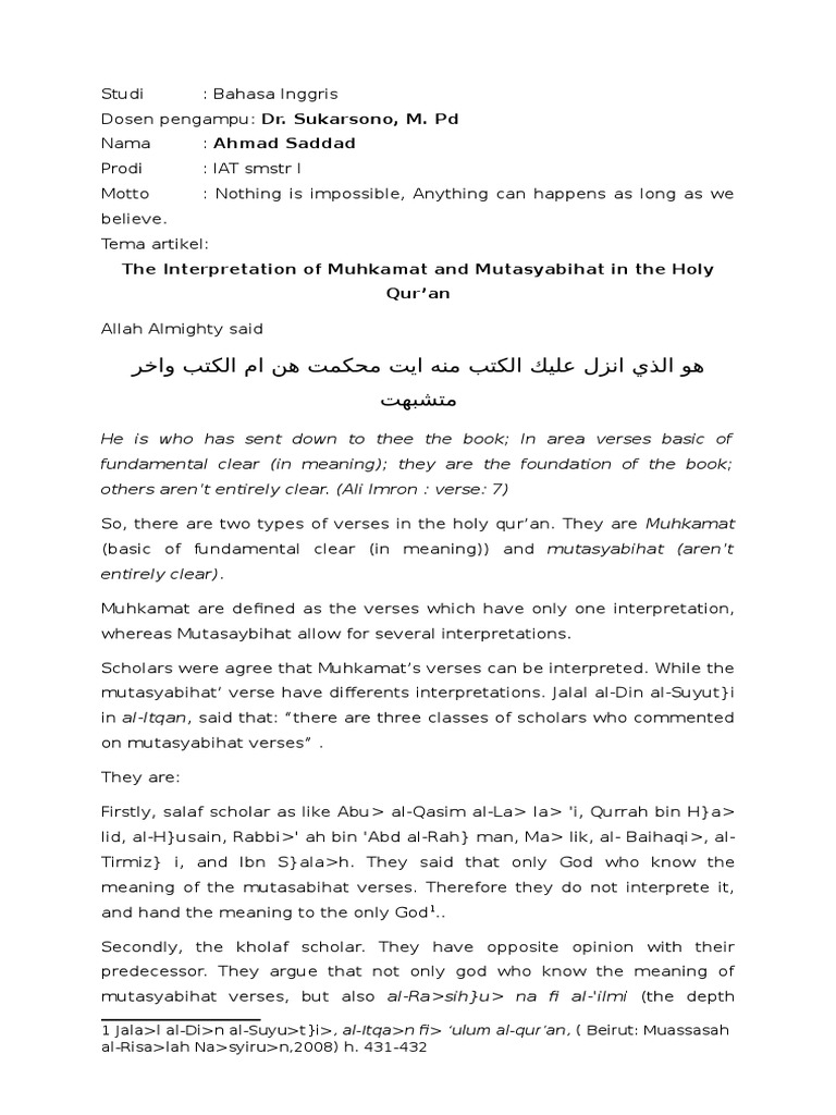 The Interpretation of Muhkamat and Mutasyabihat in the Holy Qur …