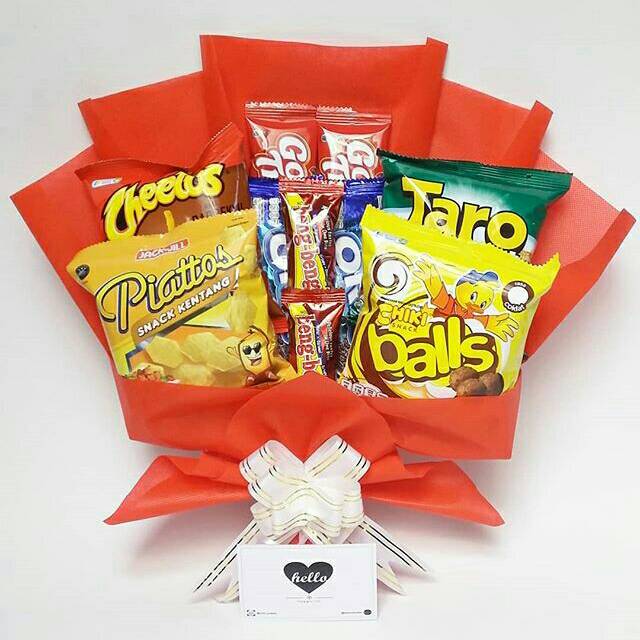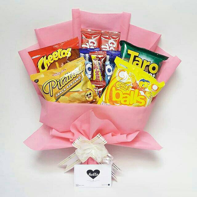 Buket snack / bouquet jajan / bouquet bunga makanan / bunga makanan free kartu ucapan | Shopee Indonesia