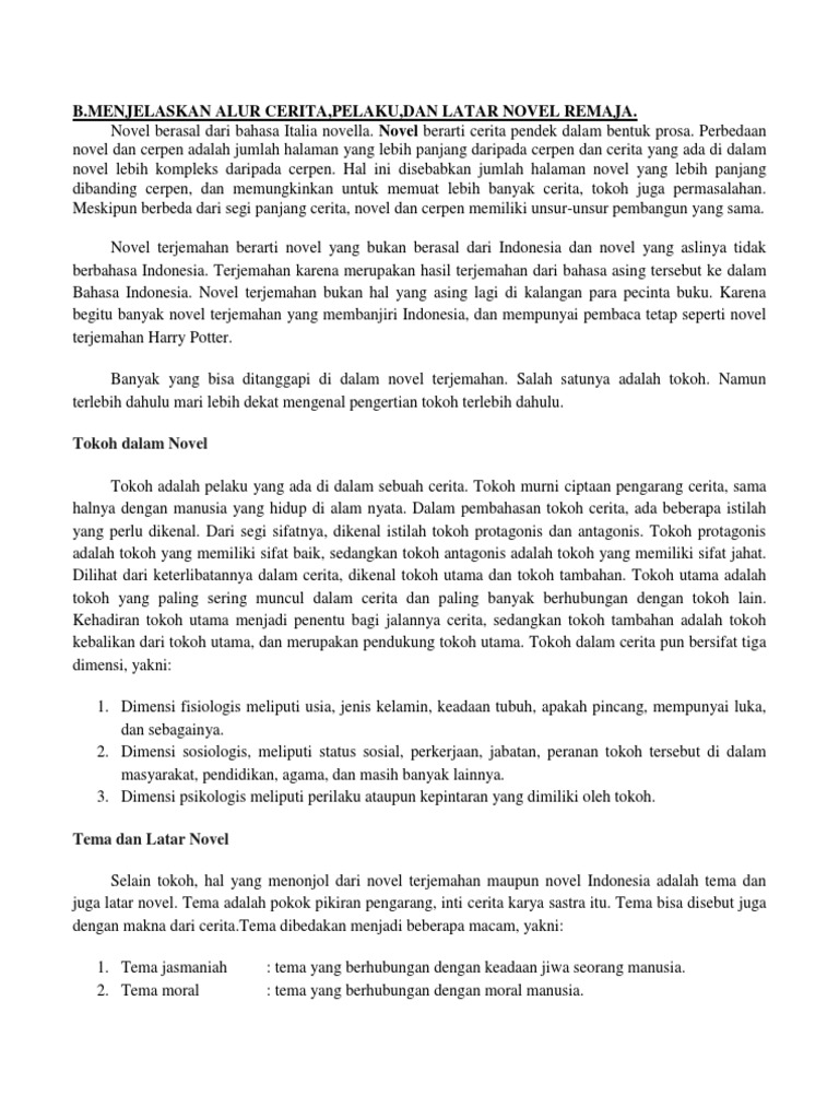 Menjelaskan Alur Cerita,Pelaku,Dan Latar Novel Remaja.