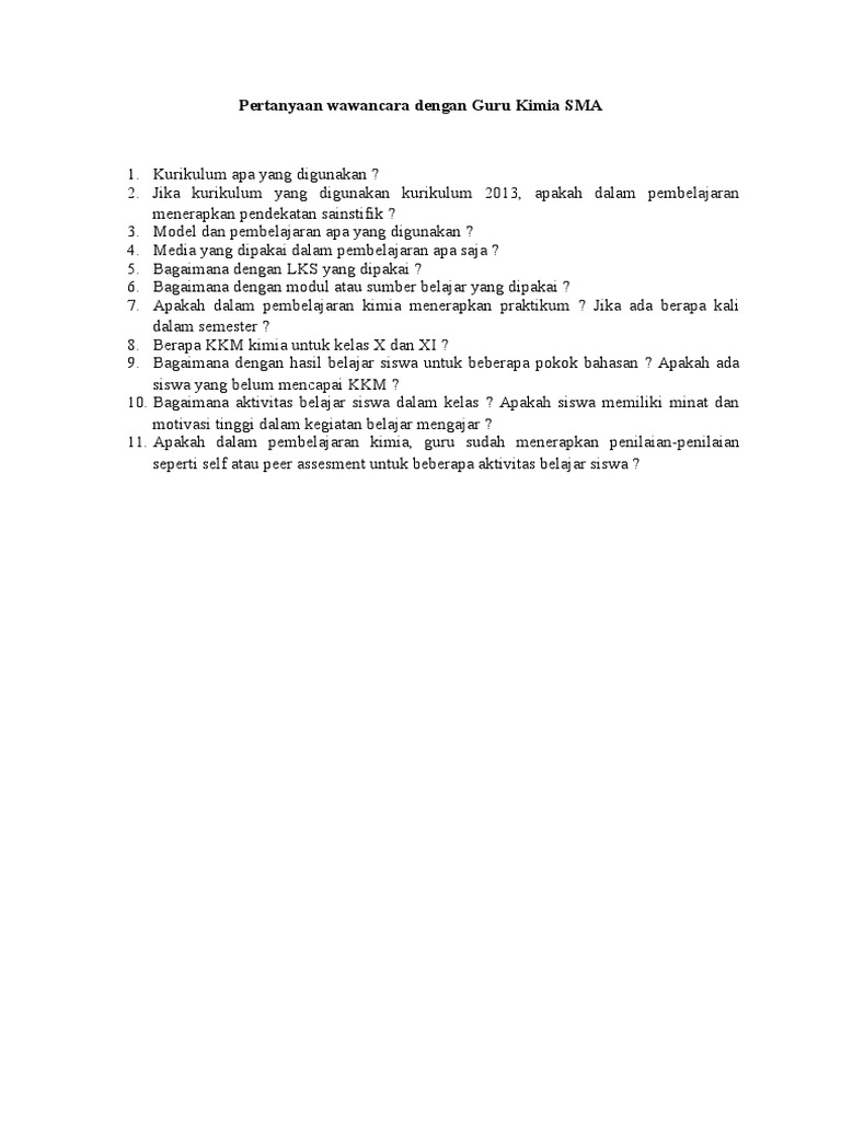 Pertanyaan Wawancara Dengan Guru Kimia