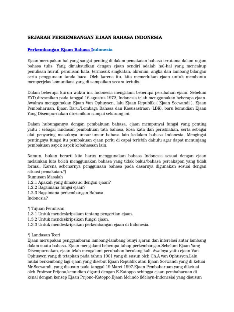 DOC) PERKEMBANGAN EJAAN BAHASA INDONESIA | Rusman Aprilyana …