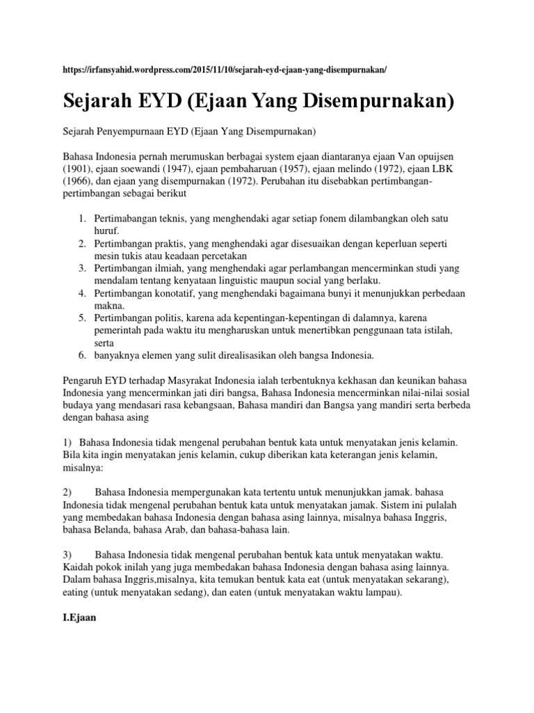Bahasa Indonesia Pedia: Sejarah EYD, Ejaan Yang Telah Disempurnakan