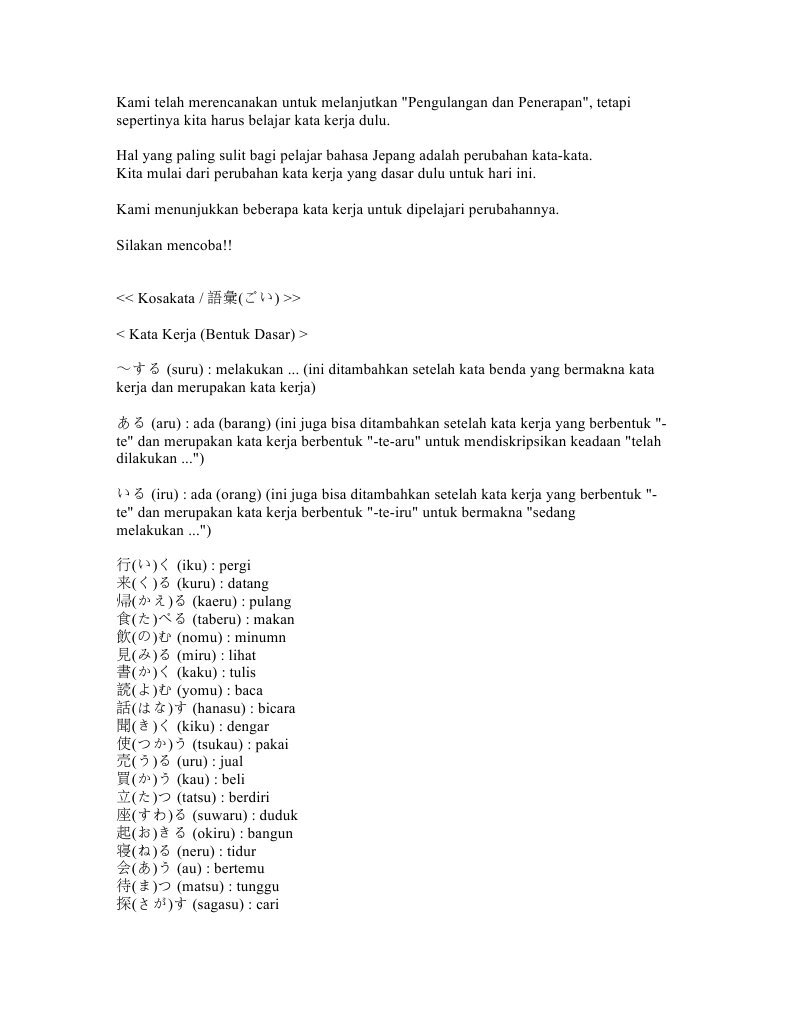 Perubahan Kata Kerja dalam Bahasa Jepang - [PDF Document]