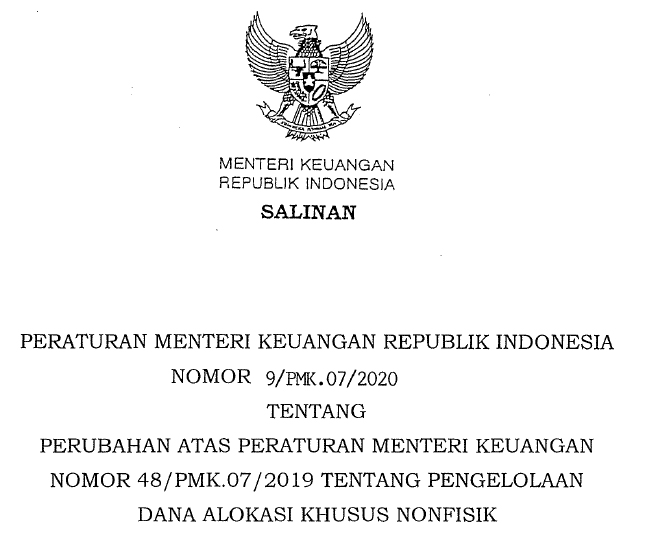 Peraturan Menteri Keuangan Nomor 9.PMK.07.2020 tentang Perubahan …