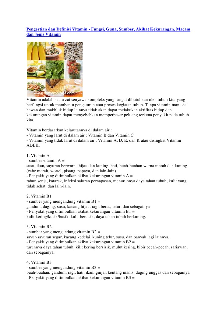 Pengertian dan Definisi Vitamin - Fungsi, Guna, Sumber, Akibat …