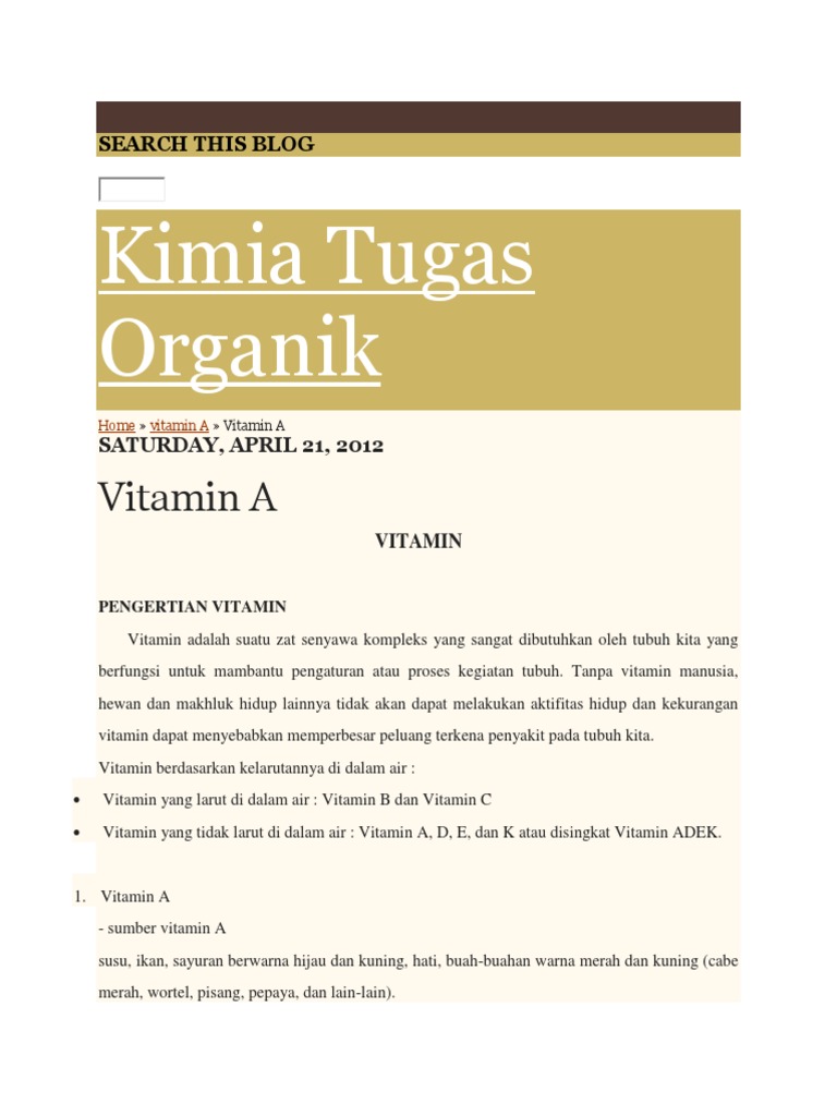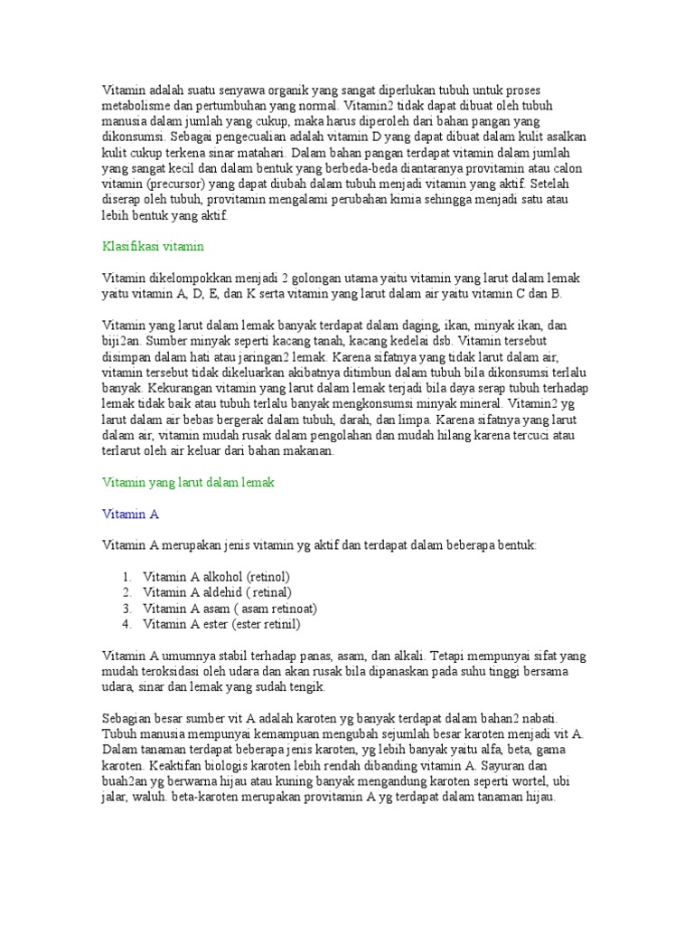 Vitamin Adalah Suatu Senyawa Organik Yang Sangat Diperlukan …