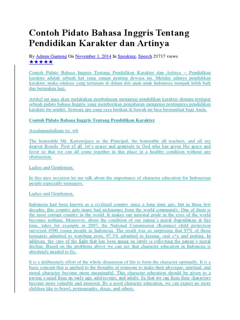 Contoh Pidato Bahasa Inggris Tentang Pendidikan Karakter Dan …
