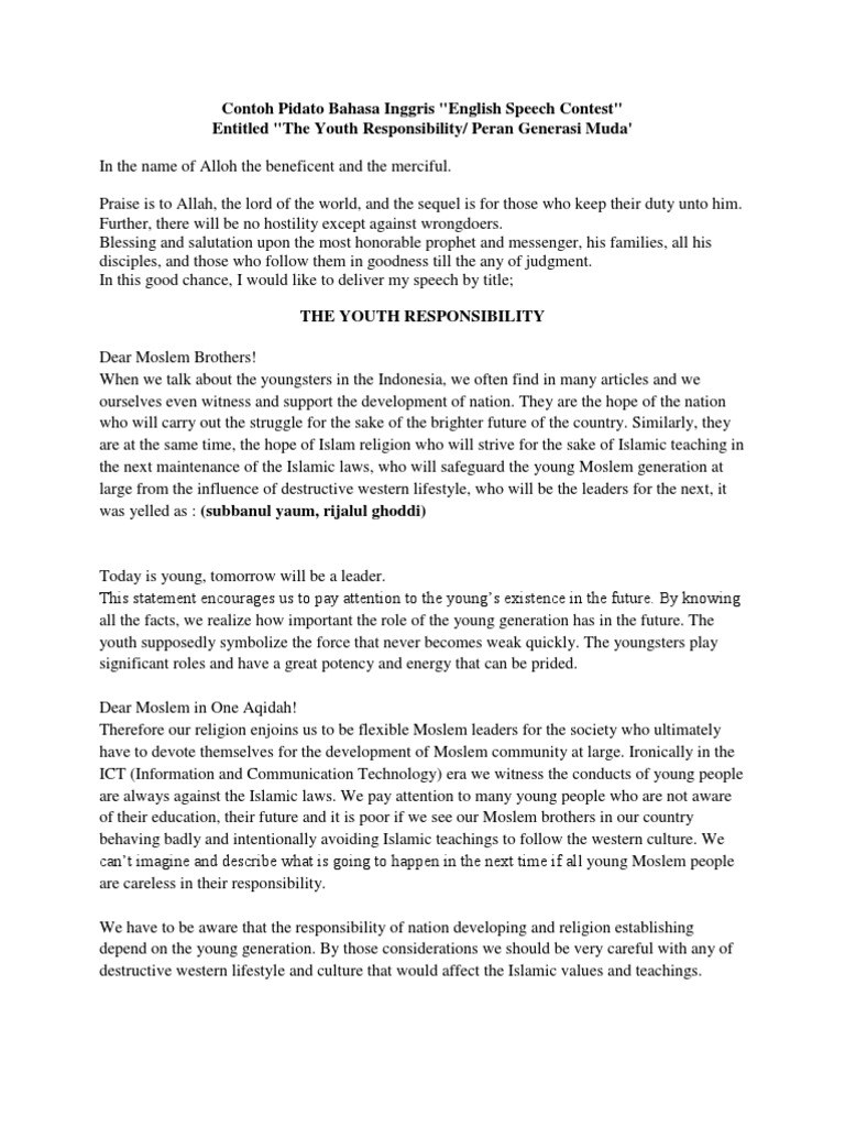Contoh Pidato Bahasa Inggris Dan Artinya