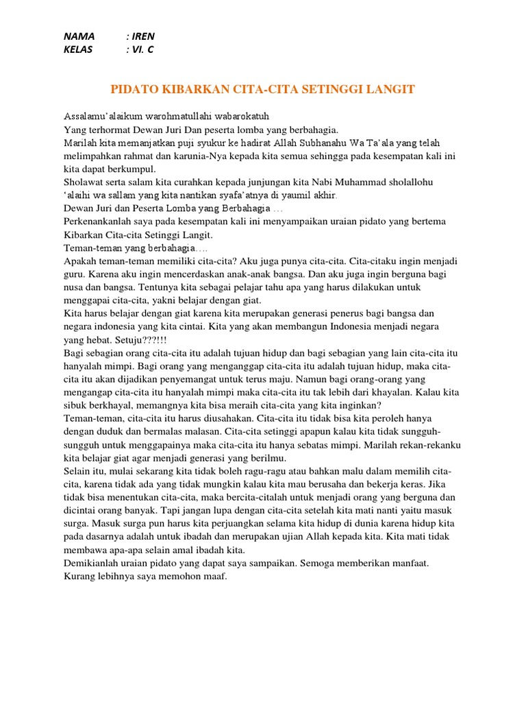 Contoh Pidato Cita Cita | Contoh Soal Dan Materi Pelajaran 8
