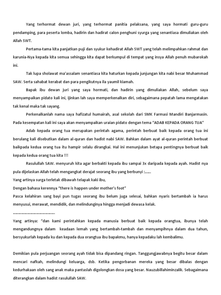DOC) Contoh Pidato Tentang Ibu Islami | Nina Rosalina - Academia.edu