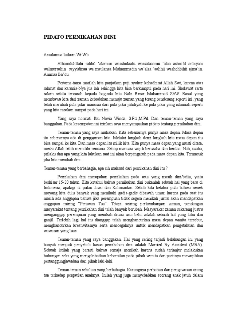 Pidato Pernikahan Dini