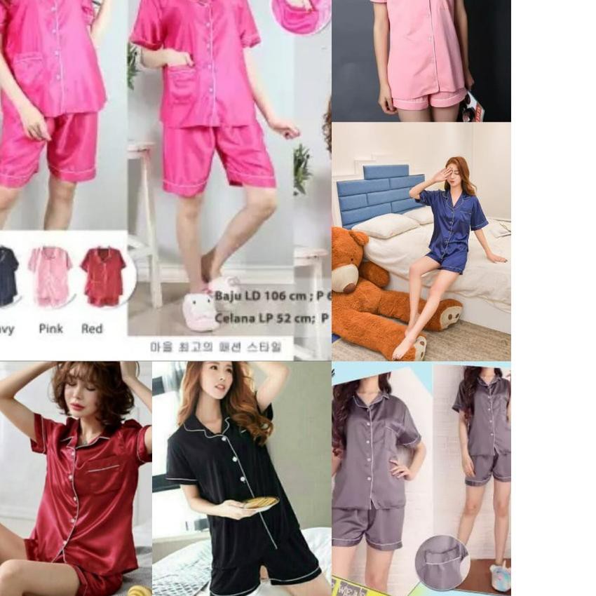 BAJU TIDUR WANITA CP SATIN PAJAMAS BASIC PAJAMAS PIYAMA LENGAN PENDEK | Shopee Indonesia