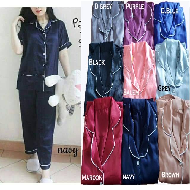 Baju tidur dewasa setelan piyama baju celana bahan satin sleepwear di Lapak Isna | Bukalapak