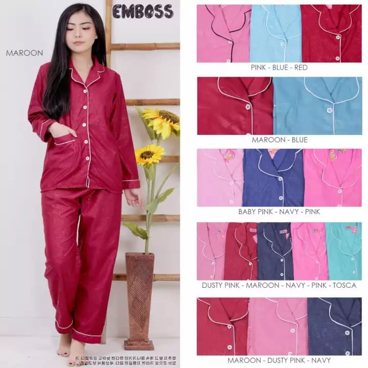 hokyfashion PIYAMA CP SATIN EMBOS JUMBO MAROON,NAVY DEWASA | Shopee Indonesia