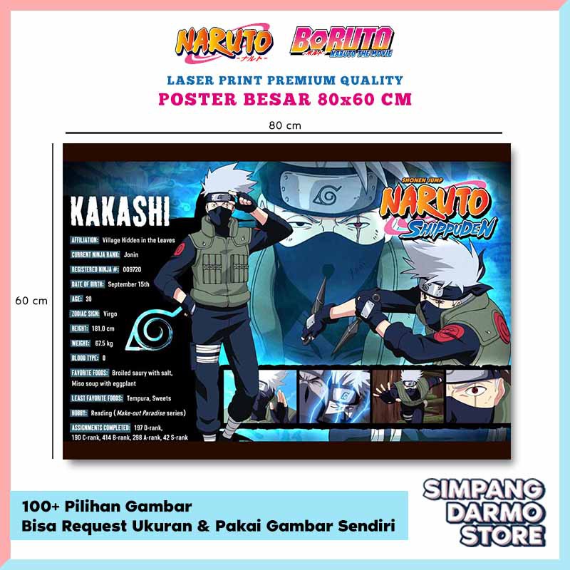 Naruto Boruto Poster Large 80x60 cm Kakashi Itachi Sasuke Poster Anime Carton Room Decoration, Wall | Shopee Singapore