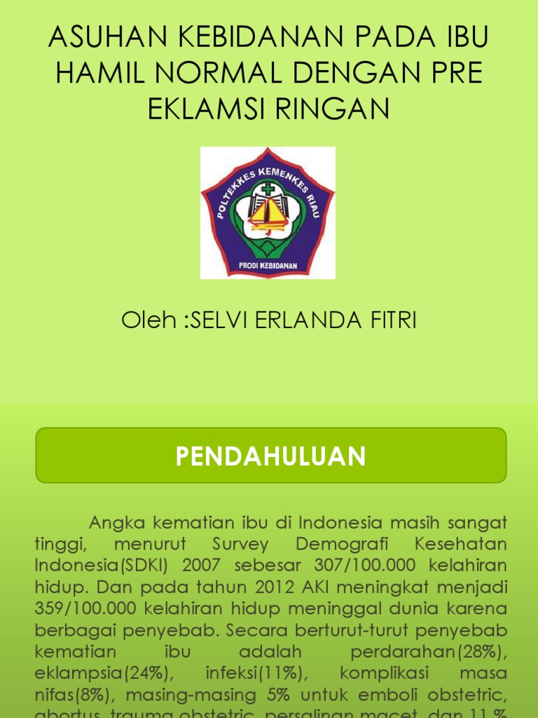 Asuhan Kebidanan Pada Ibu Hamil Normal Dengan Pre Eklamsi Ringan