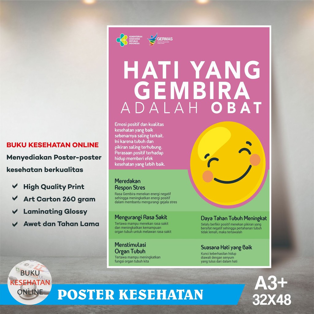 Poster Kesehatan - HATI YANG GEMBIRA ADALAH OBAT - LAMINATING …