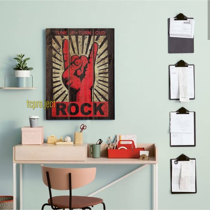 POSTER MUSIK ROCK TUNE UP TURN LOUD -HIASAN DINDING - POSTER KAYU …