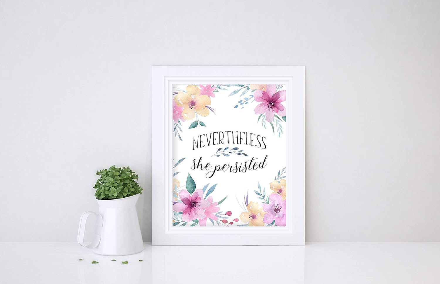 Nevertheless She Persisted Poster, Floral Inspirational Quotes Prints, Feminist Wall Art For Girls: Amazon.co.uk: Handmade