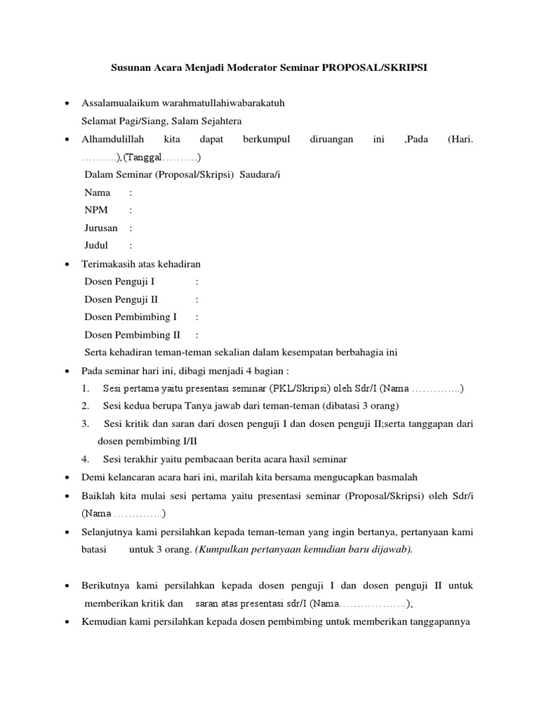 Susunan Acara Menjadi Moderator Seminar PROPOSAL
