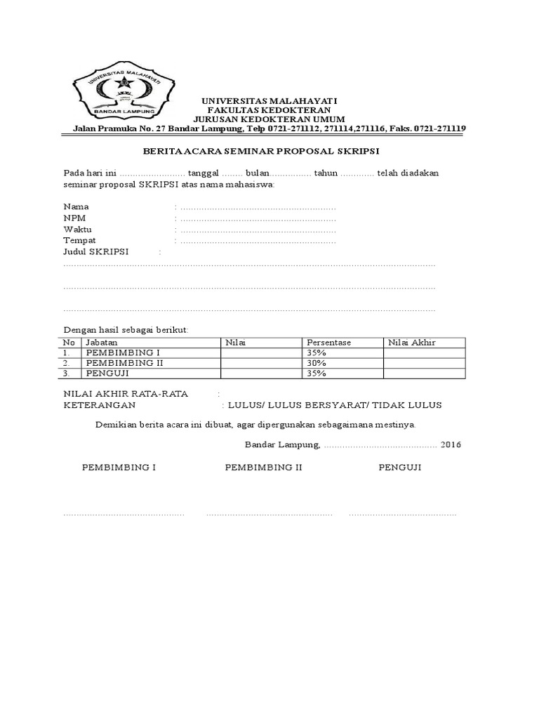 Surat Ket Tidak Ada Berita Acara Seminar Proposal